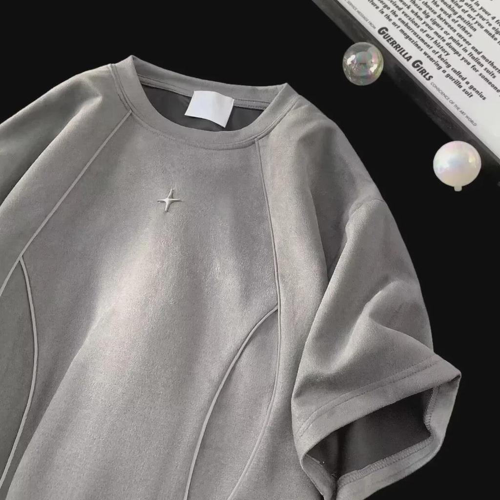 2024 Retro Herren Schwergewicht Schulterpolster Reißverschluss T-Shirt - Kurzarm Sommer High Street Trend