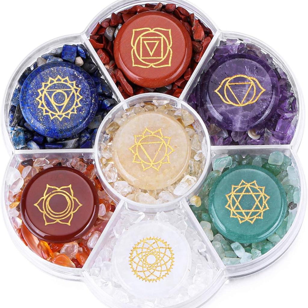 [Energieheilkristalle]: Das Chakra-Steine-Set besteht aus natürlichem Quarzkristall und Stein, großartig für Energieausgleich, Meditation, Kristalltherapie, Reiki-Heilung, Kristallgitter, Hexenwerk-Set. Die Verbindung mit dem Chakra, um die Schwingung zu erhöhen und positive Energie auszustrahlen, hat einen guten Einfluss auf körperliche und geistige.