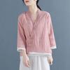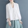 Damenhemd im Retro-Stil mit Stickereien und Knöpfen im Tang-Anzug – Dreiviertelärmel, einfarbig, Strickjacke im chinesischen Stil für Frühling und Herbst