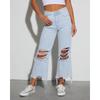 Damen Jeans mit Rissen, lässig, locker, hoch tailliert, gerade Hose, modische Temperamenthose