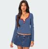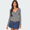Kontrastierendes gestreiftes Strick Y2K Kleidung Damen Knopf Slim Formal Schulter T-Shirt