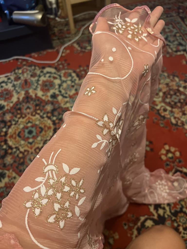 Es scheint alles in Ordnung zu sein, aber irgendwie sieht es auf dem Foto anders aus, edler vielleicht? Und mit dem erhaltenen Schal könnte man mit seinem Requisit nach Bollywood gehen.