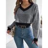 Lässiger Pullover mit gestreiften Laternenärmeln für Damen im Herbst und Winter