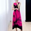High-End-Sommerkleid für Damen mit Schmetterlingsdruck, schmale Passform, ärmelloses Westenkleid mit V-Ausschnitt, plissiertes langes A-Linien-Kleid