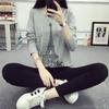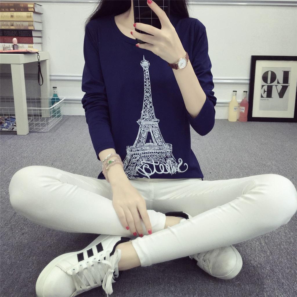 Weißes bedrucktes Langarm-T-Shirt Damen Frühling und Herbst Neuer Stil Innen Rundhals Basisshirt Locker Schlankes Design Oberteil