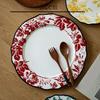 Keramikteller im europäischen Stil, Vintage, üppiger Blumendruck, westliches Essen, Speiseteller, Nachmittagstee, Dessertteller, Geschirr