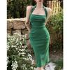 "Damen Strukturiertes Rosa Neckholder Trägerkleid mit Französischem Taillen- und Hüftumspielendem Midikleid für den Sommer"