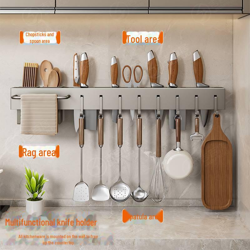 Multifunktionales Küchenmesser- und Essstäbchengestell aus Edelstahl, ohne Bohren