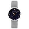 Merkmale: Eine Damenuhr mit schlichtem Design. Nimmt einen gut dazu passenden Netzgürtel an und die Länge kann frei eingestellt werden. Das sternenhimmelähnliche Zifferblatt funkelt an Ihrem Handgelenk, wenn es das Licht einfängt, und verleiht ihm eine herausragende Präsenz, egal, wo Sie es betrachten, und verleiht ihm eine feminine Note. Es wurde so entworfen, dass es den gesamten Arm schön aussehen lässt, ohne zu auffällig zu sein, und kann auch als Accessoire verwendet werden.