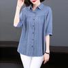 Damen Lässig Mode Elegant Gestreift Bedruckt Knopfhemd Sommer Locker Halbarm Tops