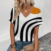 Sommer Damen T-Shirt Mode Kunst Linien Druck V-Ausschnitt Oberteile Tees Weiblich Lässig Stilvoll Kurzarm Kleidung Outdoor Vintage Outfit