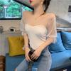 Sommer Mesh Kurzes Top Design Sinn Nische Schwarz V-Ausschnitt Puffärmel Gestricktes Kurzarm T-Shirt für Damen