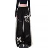 Amerikanisch Süß & Cool Hot Girl Schleife Spitze Spleiß Lässig Damen Herbst Elastische Taille Locker Gerade Hose