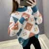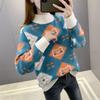 2024 Damenmode: Verdickter Jacquard-Lockerstrickpullover mit halbohem Kragen für Herbst und Winter