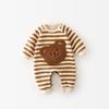 „Youyou Home Koreanischer Baby-Strampelanzug aus gestreiftem Fleece mit Bärenpuppen-Design für Frühling und Herbst.“