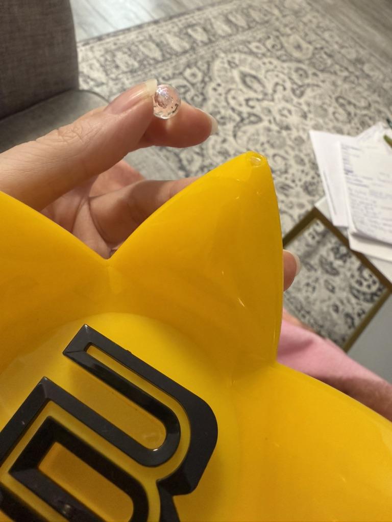 Leider kam das Produkt an einer der Ecken der Krone gebrochen an, das Plastik ist aufgeplatzt und die Kugel ist zerbrochen... Sicherlich aufgrund mehrerer Stöße, da die Verpackung des Lightsticks und die Umverpackung ziemlich verbeult waren.