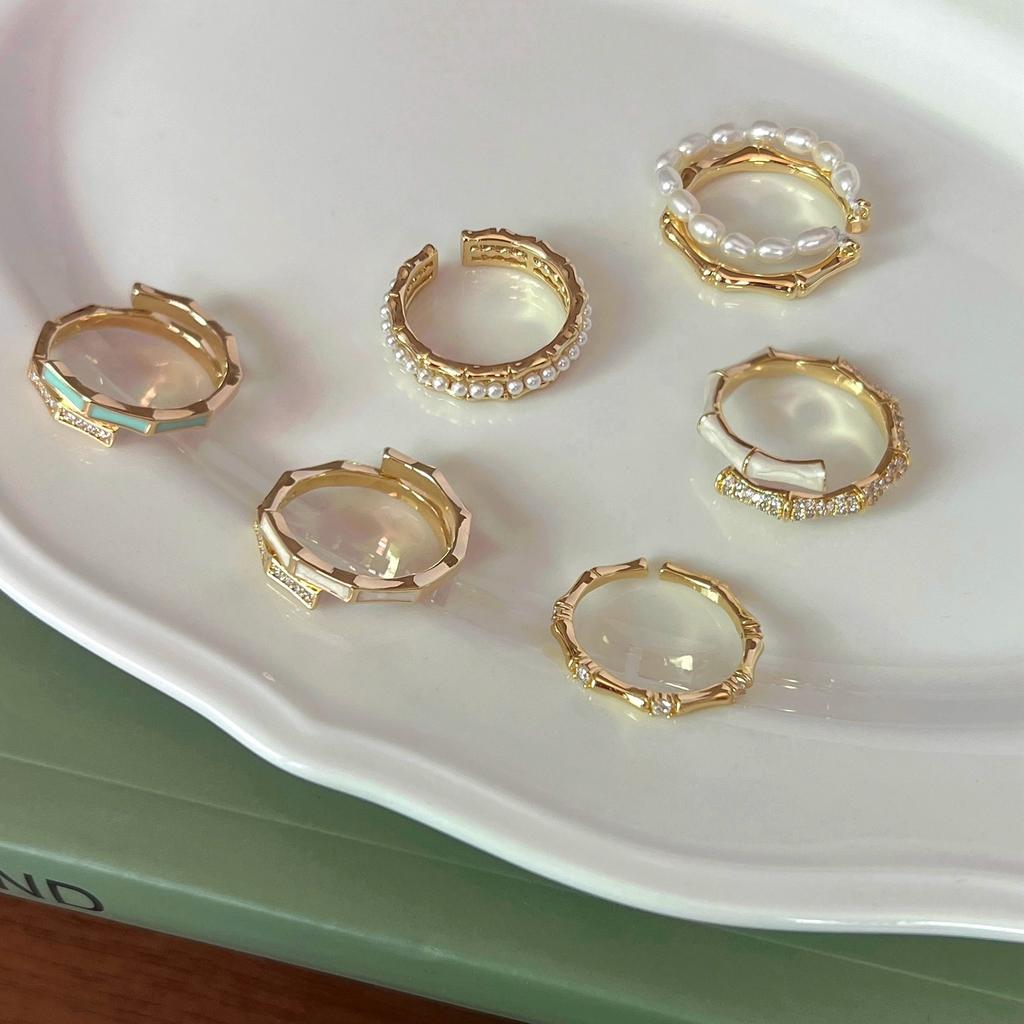 Koreanischer Stil Schlichter Zirkon Bambusring Damen Offen Verstellbar Nische Hochwertig Einzigartig Westlicher Stil Perlenring Mode