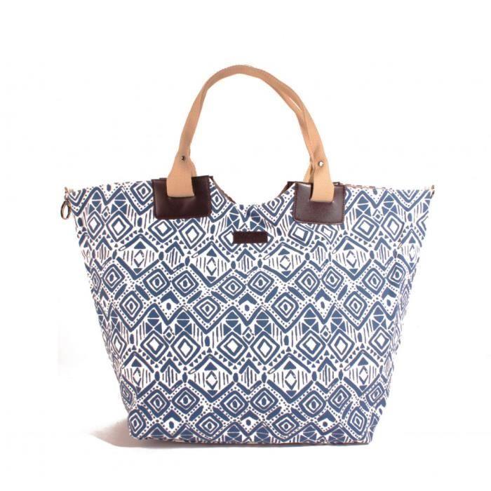 Sac Cabas - MS2O033P10 - Azteque Bleu - 100% Coton+PU - Fermeture Aimantée - Poche Zippée