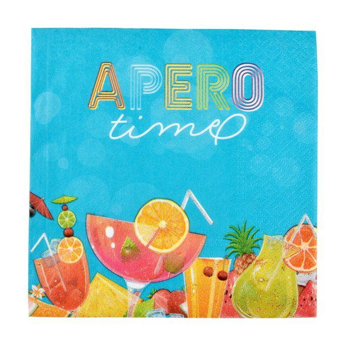 Lot de 20 serviettes en papier apero time 33 cm