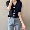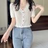 Kurzärmliger Strickpullover für Damen mit sommerlichem Designgefühl, ausgehöhlter V-Ausschnitt-Jacke, Schal über kurzem Oberteil
