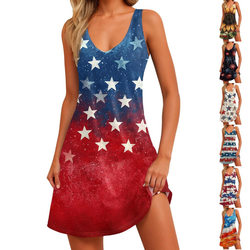 Damen Casual Mode V-Ausschnitt Ärmellos Bedruckt Seitentasche Kurzer Rock Kleid