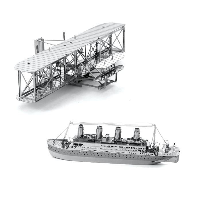 Metal Earth Fascinations Wright Brothers Airplane and Titanic Ship Puzzle 3D en métal