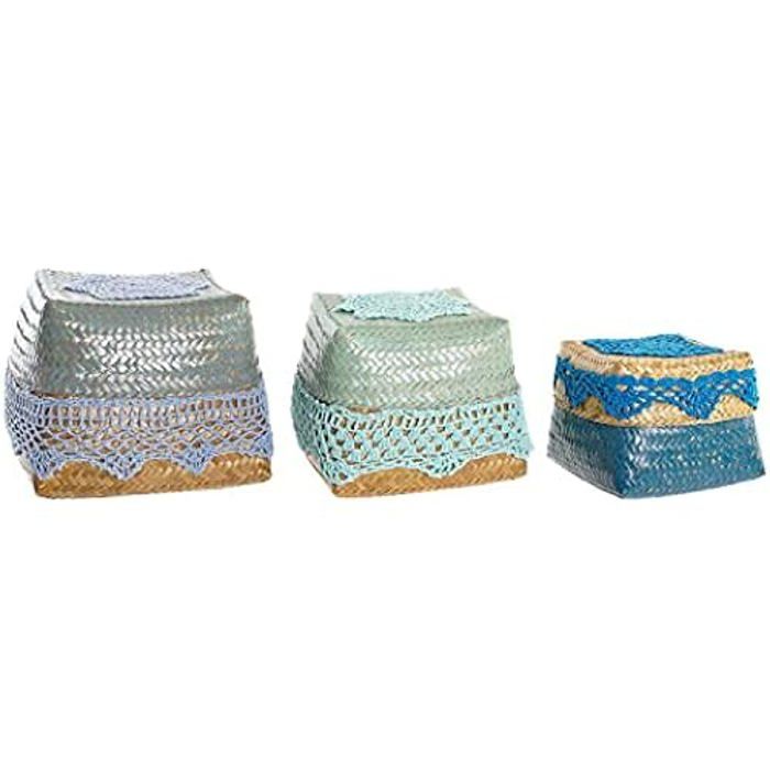 Körbe-Set - DKD HOME DECOR - Standard - Baumwolle und Bambus - 49 x 30 x 30 cm - Blau und Türkis
