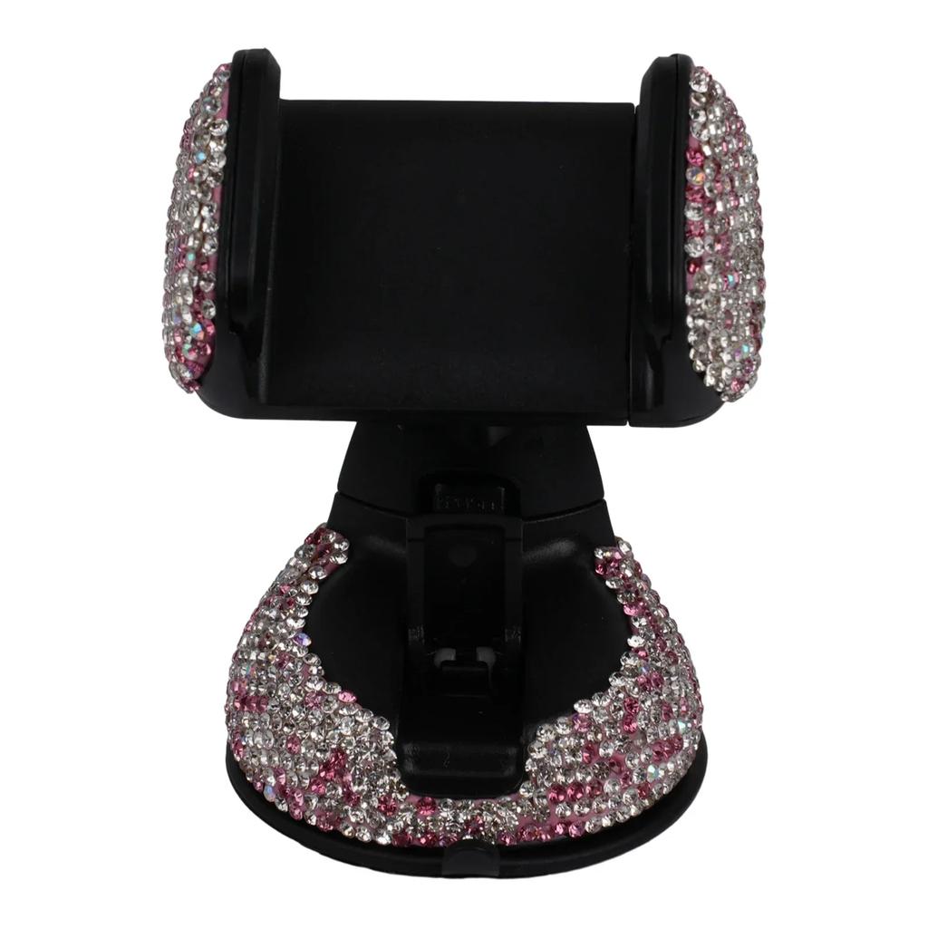 Dashboard Phone Holder Girls Car Interior Mobile Mount Pink Plastic Rhinestones Stylish Accessories Adjustable