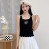 Neues Sommerdesign Schlichtes Temperament Süß Kontrastfarbe Bestickt Gestrickte Weste Trägertop