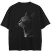 Streetwear T-Shirt mit Katzen-Grafik, Baumwolle, gewaschen, schwarz, Unisex-Tops, T-Shirts, Sommer, kurze Ärmel