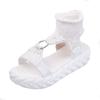 Sandalen Damen Sommer 2024 Damenmode Sexy Strandbekleidung Flache Schuhe Einfarbig Geflochtene Strick-O-Ring-Ausschnitt Plateausandalen