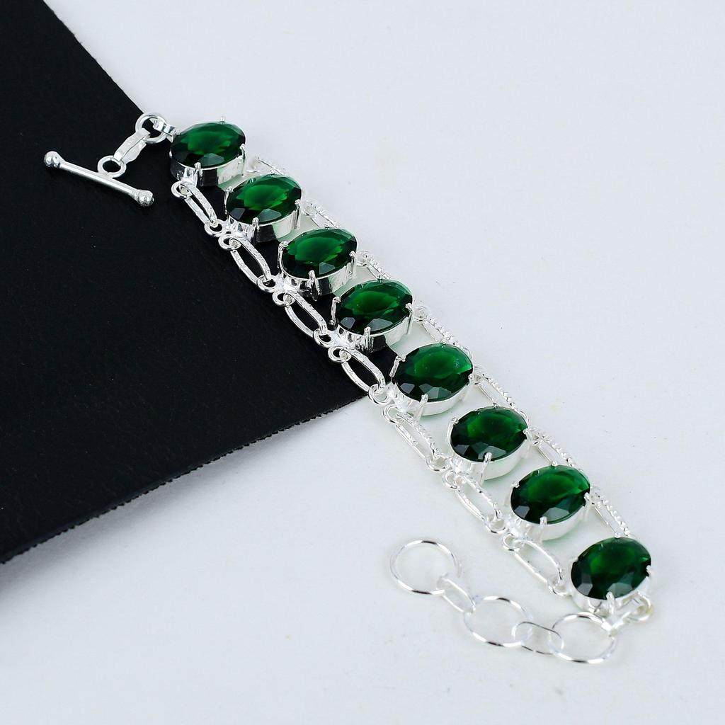 Grüner Turmalin Edelstein Handgemachtes 925 Sterling Silber Armband, Grünes Turmalin Armband für Frau, Unisex Armband, Wattegeschenke