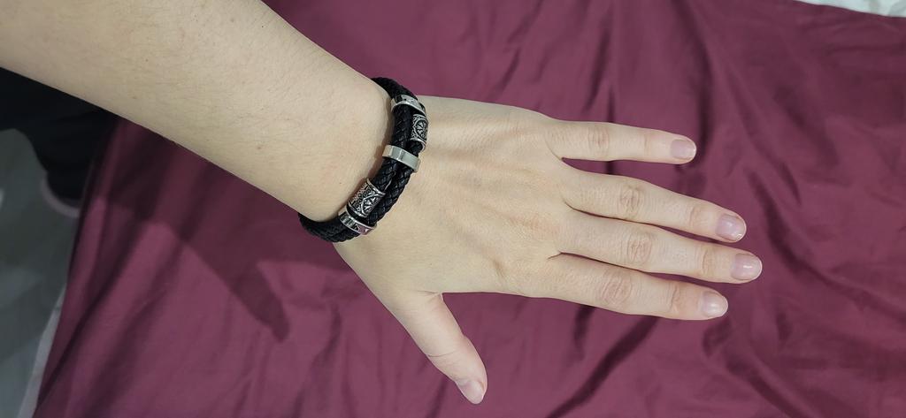 Neues Edelstahl Lederseil Armband Nordische Wikinger Serie Doppellagig Gewebtes Leder Herrenarmband
