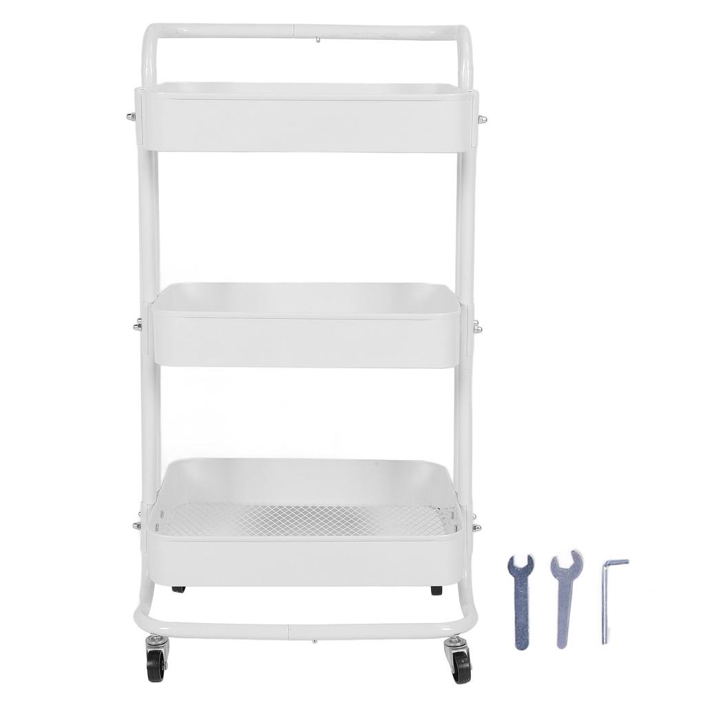 Rolling Utility Cart with 360 degrees Rotating Wheels Handle Carbon Steel High Load Bearing 3 Tier Mesh