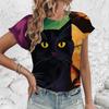 Damen Sommer 3D Lustige Katzen Damen Kurzarm Lässige Mode T-Shirt