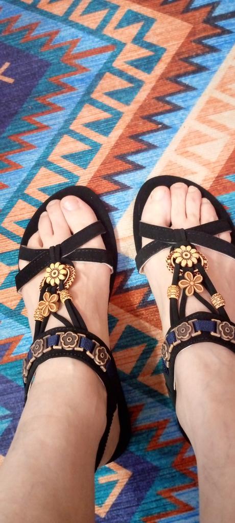 Sie passen nicht jedem Fuß, aber einem schmalen Fuß. Bei meinem Paar ist eine Sandale 0,5 cm länger als das andere Paar.. Das ist noch nie passiert, das ist das erste Mal. Die Optik der Sandalen ist schlicht. Die Sohle ist dünn.