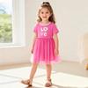 Kleinkind Mädchen Sommer Outfit Buchstabenstickerei Kurzarm T-Shirt mit buntem gestuftem Tüllrock 2-teiliges Set