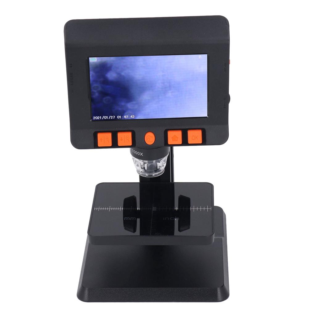 2. 4.3in LCD-Bildschirm: Das Mikroskop verfügt über einen 4,3-Zoll-Bildschirm, bietet ein großes Sichtfeld, ist praktisch für genaue Beobachtungen, Schweißarbeiten usw. und unterstützt die Aufnahme von Bildern und Videos.