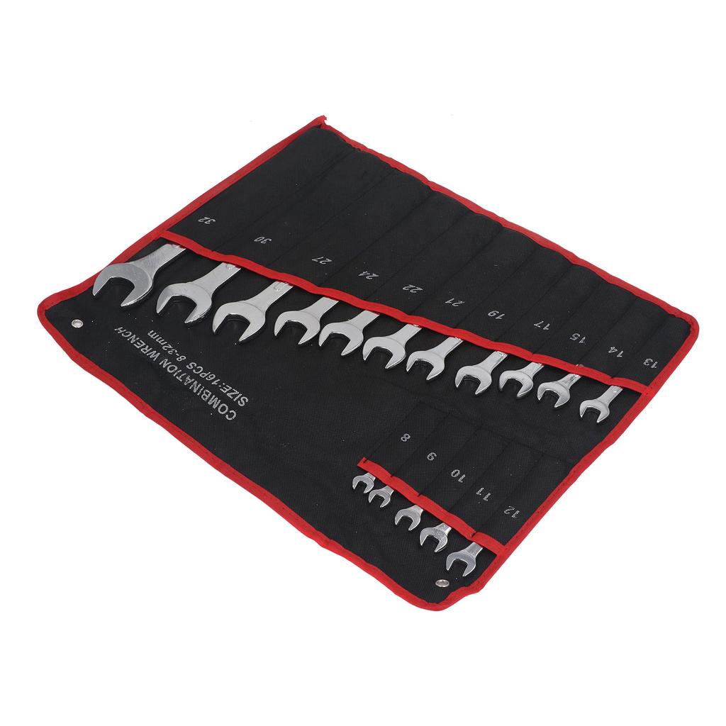 1 x AufbewahrungstascheSpezifikationen: Das Set enthält 16 Stück Maulschlüssel, mit 16 verschiedenen Spezifikationen (8?32 mm), Doppelkopf-Zweckdesign, das verschiedene Wartungsbedürfnisse erfüllen kann.