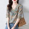 Damen Bluse aus floralem Chiffon Sommer Schön und Stilvoll Kurzärmeliges Oberteil für Mütter