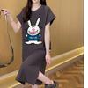 Women's Fashion Loose Korean Version of The T-shirt Skirt Summer Fat Mm Short Sleeve Over The Knee Long Dress Casual Split Dress