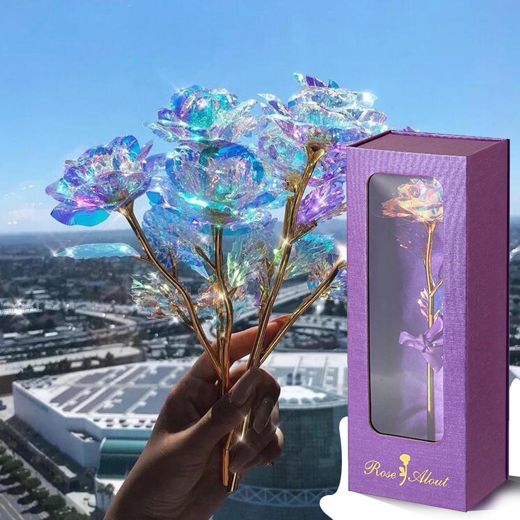 Bunte leuchtende Rose, künstliche Blume, einzigartige Geschenke für Frauen und Mädchen, Valentinstag, Geburtstag, Party, Blumendekoration