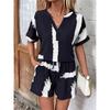 Damen Frühling und Sommer V-Ausschnitt Bedrucktes Mode Elastisches Damen T-Shirt Set