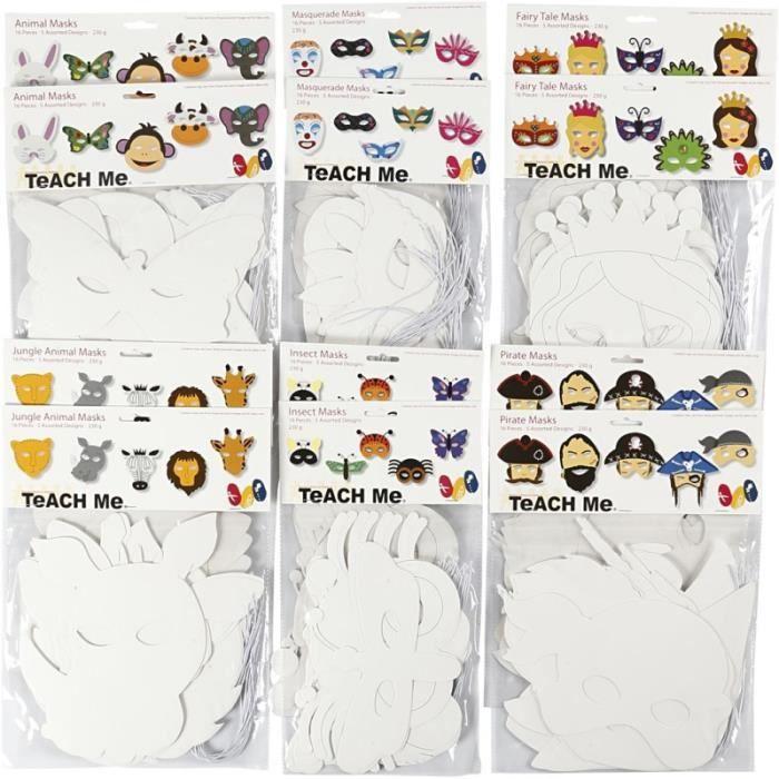 Pappmasken, h: 15-22 cm, l: 24-25 cm, 192 Stück, weiß