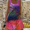 Damen Rosenblumen Fake Zweiteiler Fliegende Libellen Bedrucktes Ärmelloses Rundhalskleid Locker Weich und Bequem Übergröße Kleid