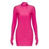 Solide Langarm Mit Handschuhe Mini Kleid Bodycon Sexy Streetwear Party Halb Rollkragen Outfits Y2K Kleidung Großhandel