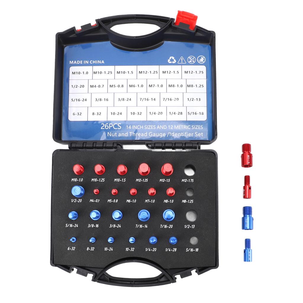 26 x Mutter-Bolzen-Gewindeprüfer1 x Aufbewahrungskoffer