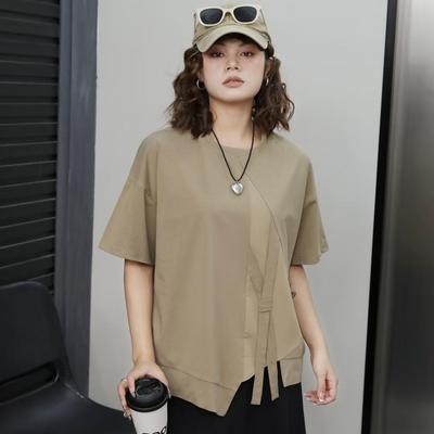 DIMANAF 2025 Übergröße Pullover Sommer T-Shirt Damen Asymmetrisch Uni Kurzarm Lockeres T-Shirt