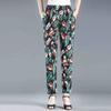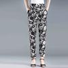 WTEMPO Elastic High Waist Thin Printed Women's Spring Summer Ice Silk Wide Leg Pants Mother's Loose Cropped Pants