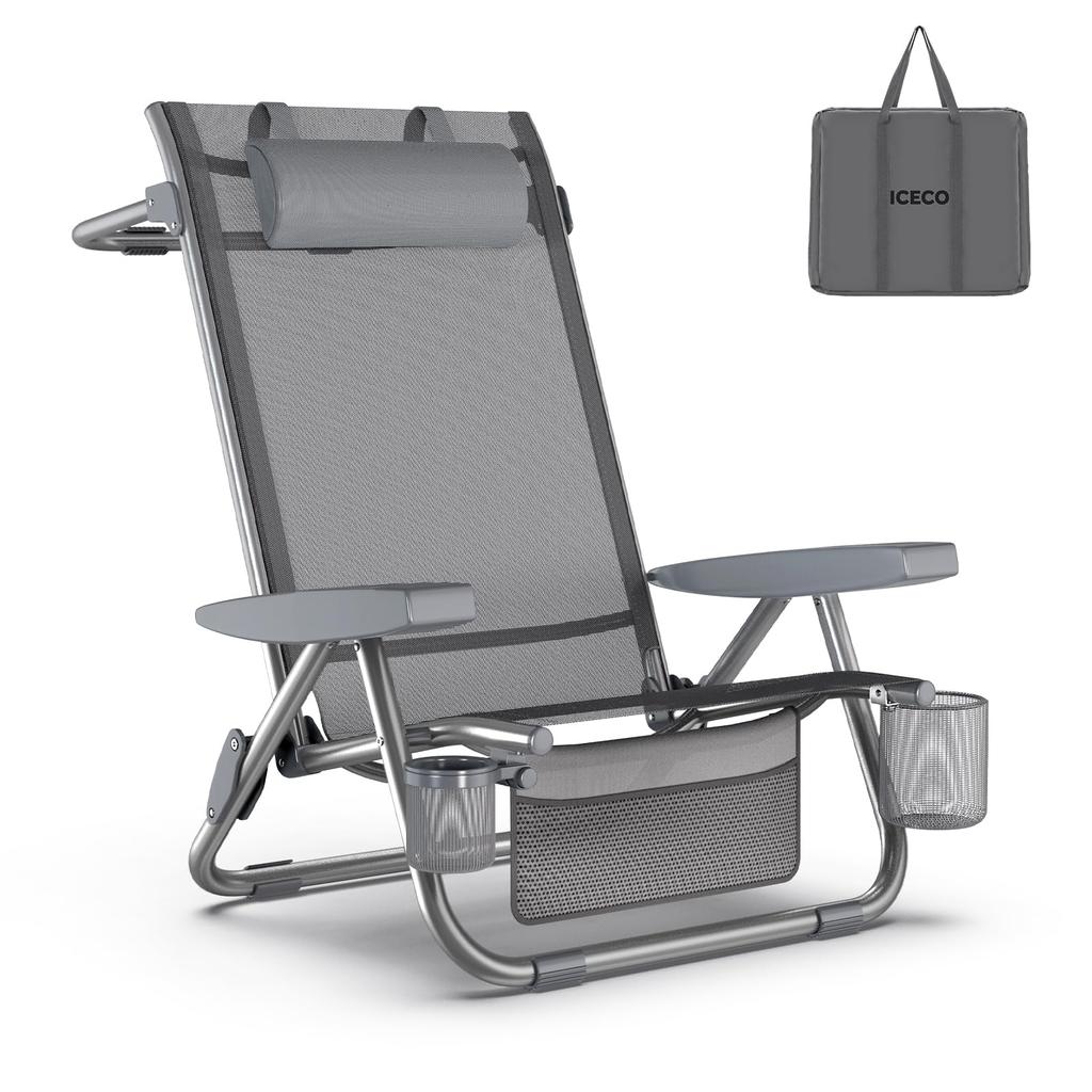 ICECO Neigbarer niedriger Netzstoff Teslin A7075 Aluminiumlegierung Belastbarkeit Aufbewahrungstasche kompakt Garten 5-Positionen Stuhl, Sitz, Gestell, 245KG, enthalten,
